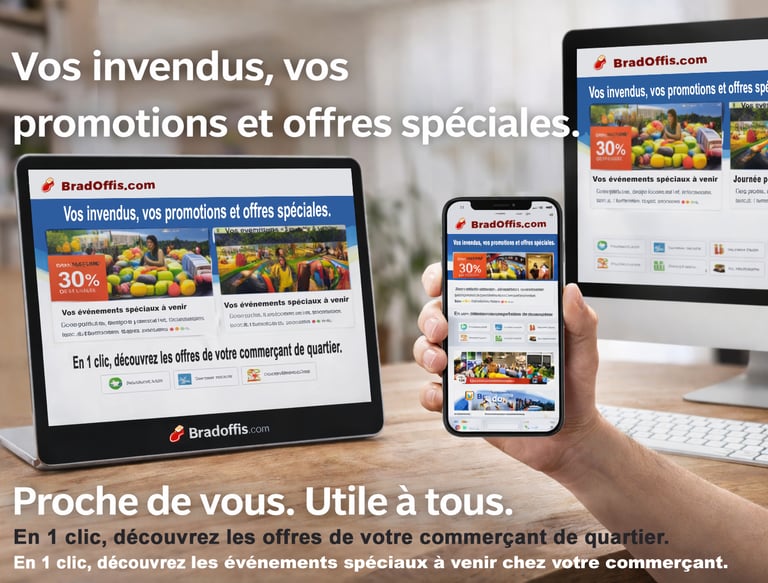 Commerçants et clients, accédez à bradoffis.com pour gérer facilement votre visibilité et achats en ligne.